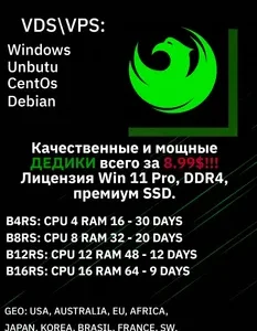 Дедик сервер VDS WIN 11 PRO cpu4 ram 16 — 30 дней